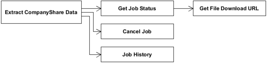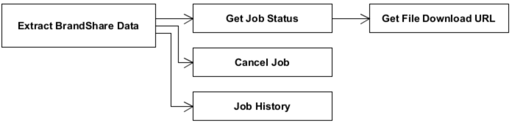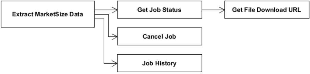 User flow starts with Brand Shares, Company Shares or Market Sizes API call. This API creates a new job for Passport data file extraction creation.